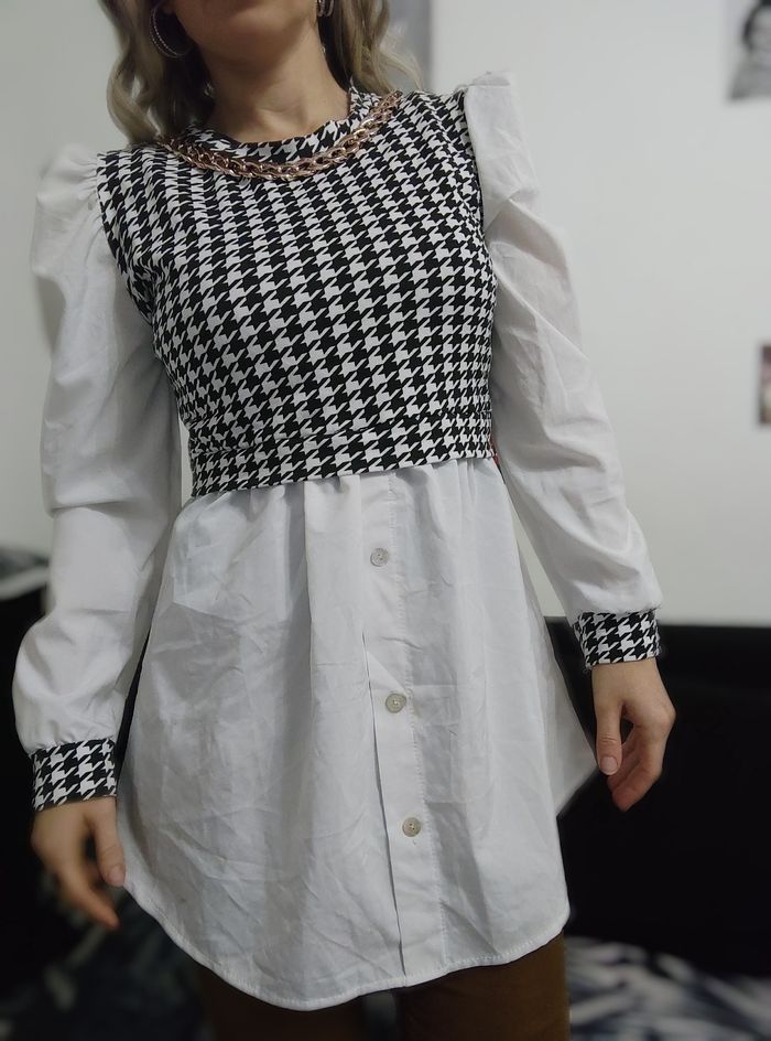 Tunique mode 8 ans 2 en 1. Avec.chaine intégrée. #8ans #chemise #piedpoule #chaine #mode #tendance #anniversaire #fetes #tunique #robe #chicaprie #terstal #tao #dpam #jubel #europekids