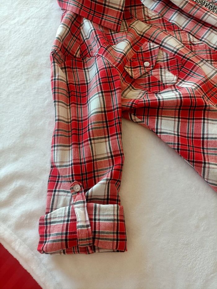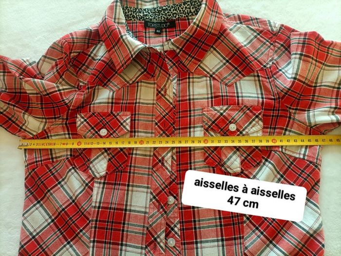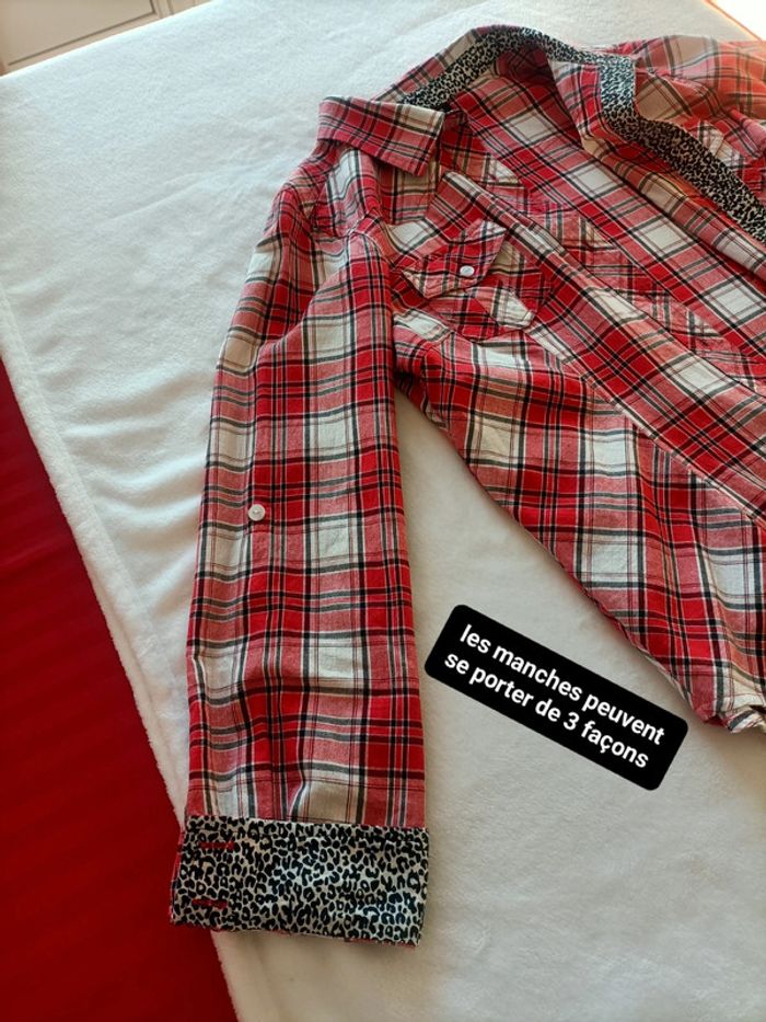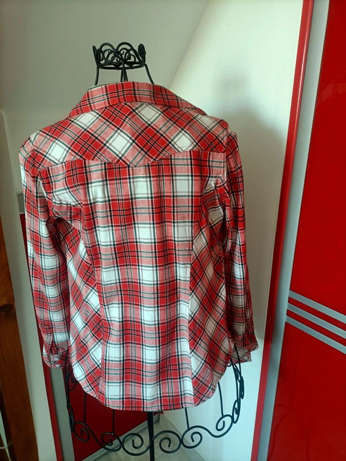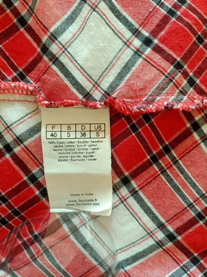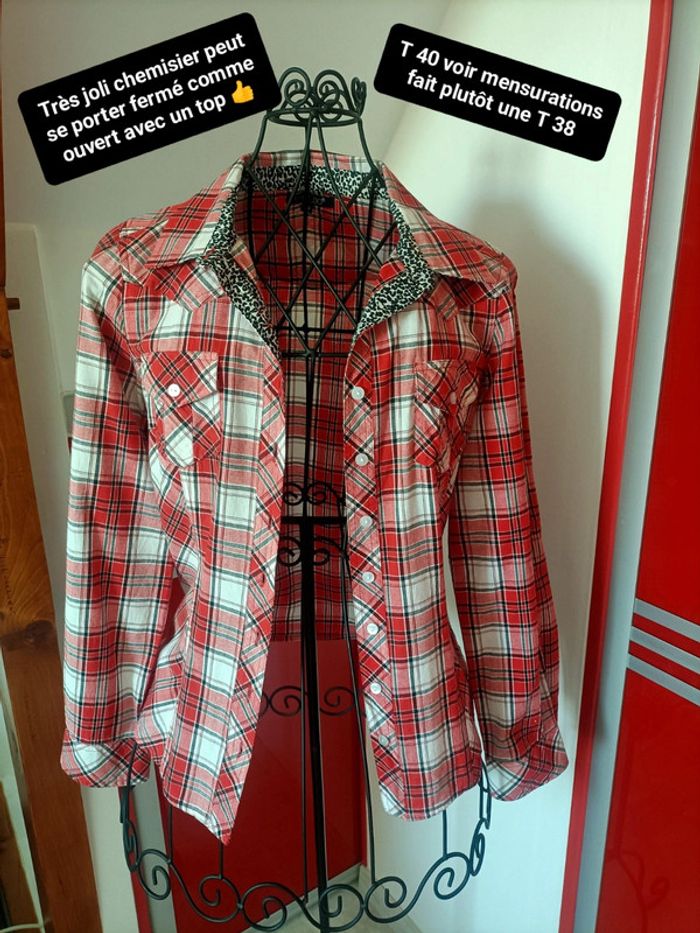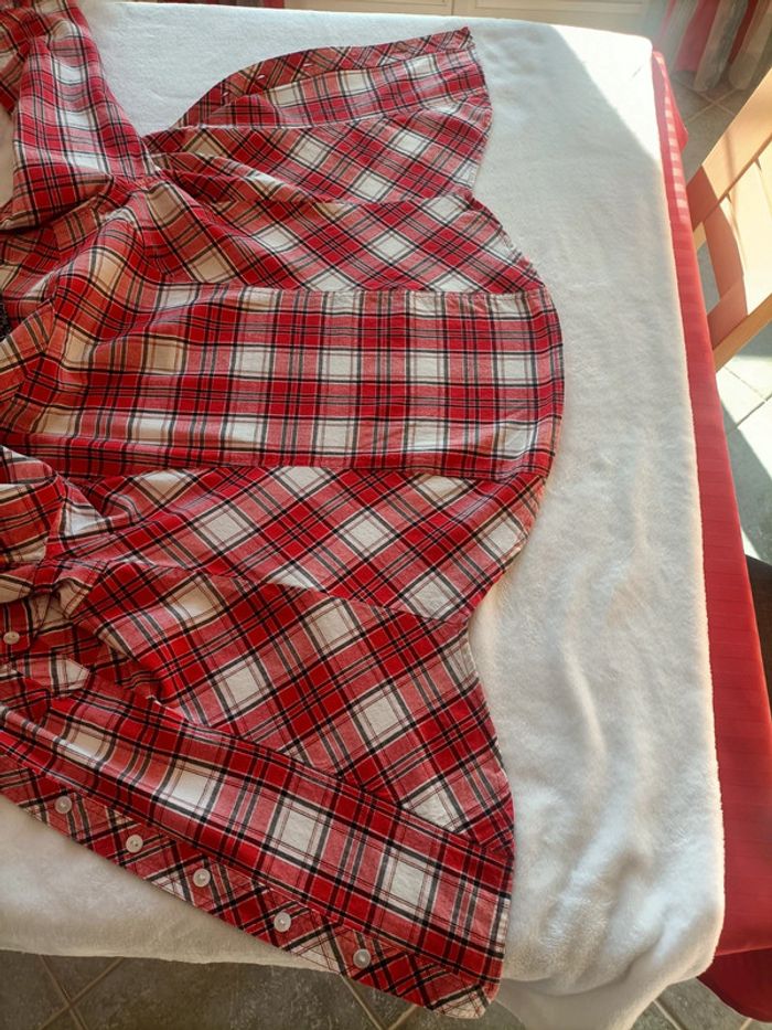 Chemisier à carreaux rouge/blanc TB état T40 voir photos pour les mensurations En 100% coton très agréable à porter N'hésitez pas pour d' autres renseignements .
