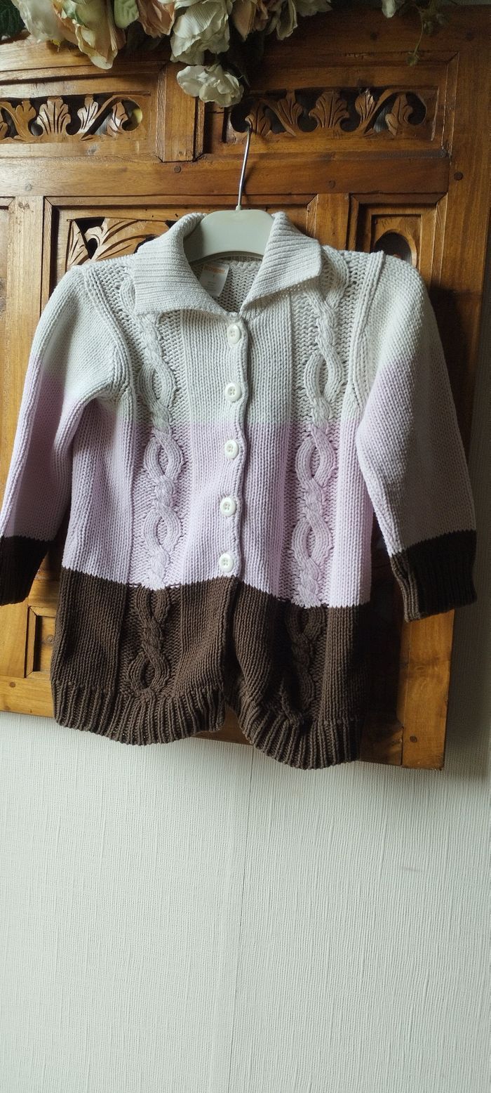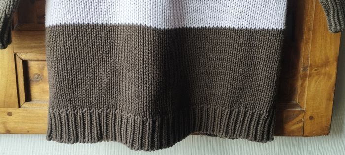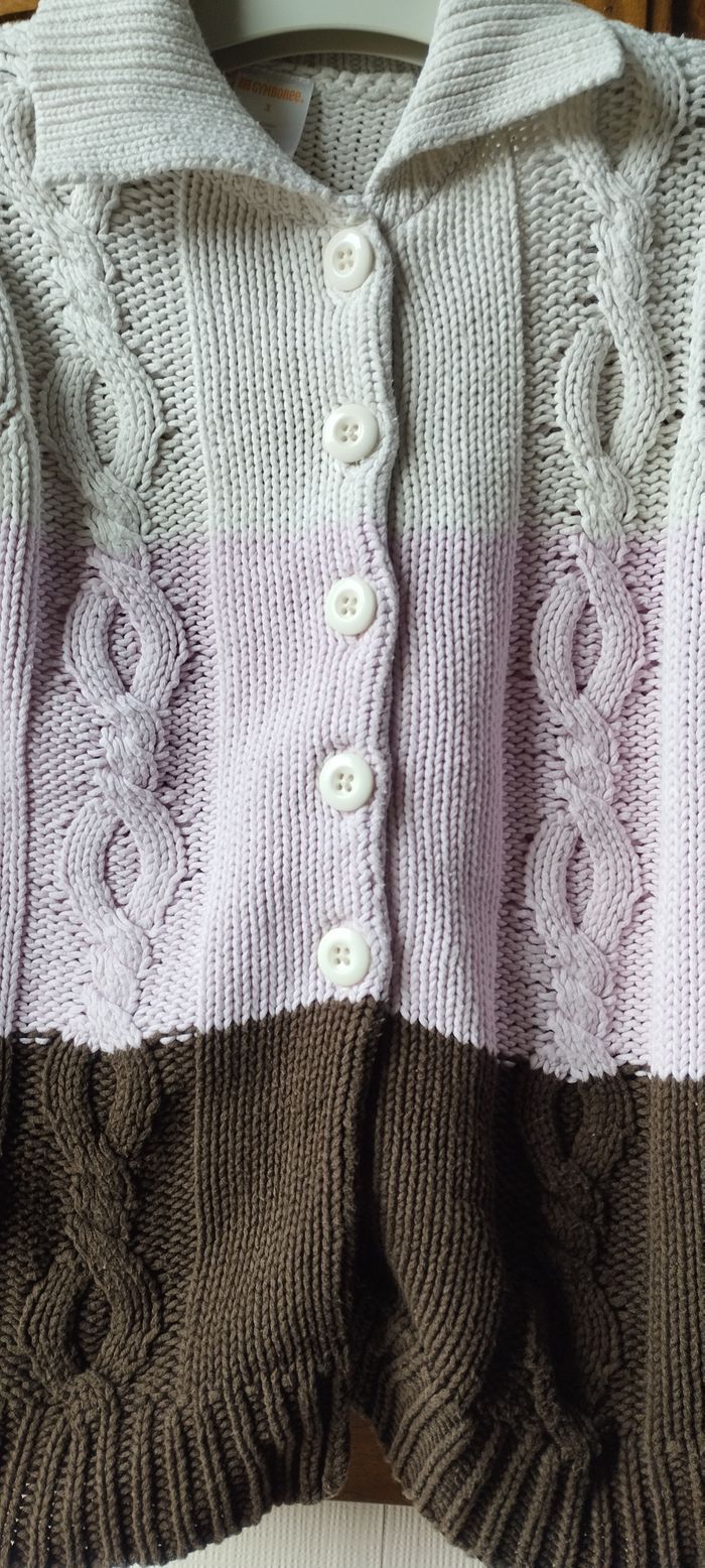 Gilet pour enfant 8/10ans, grosses mailles coton. coloris marron rose et écru.