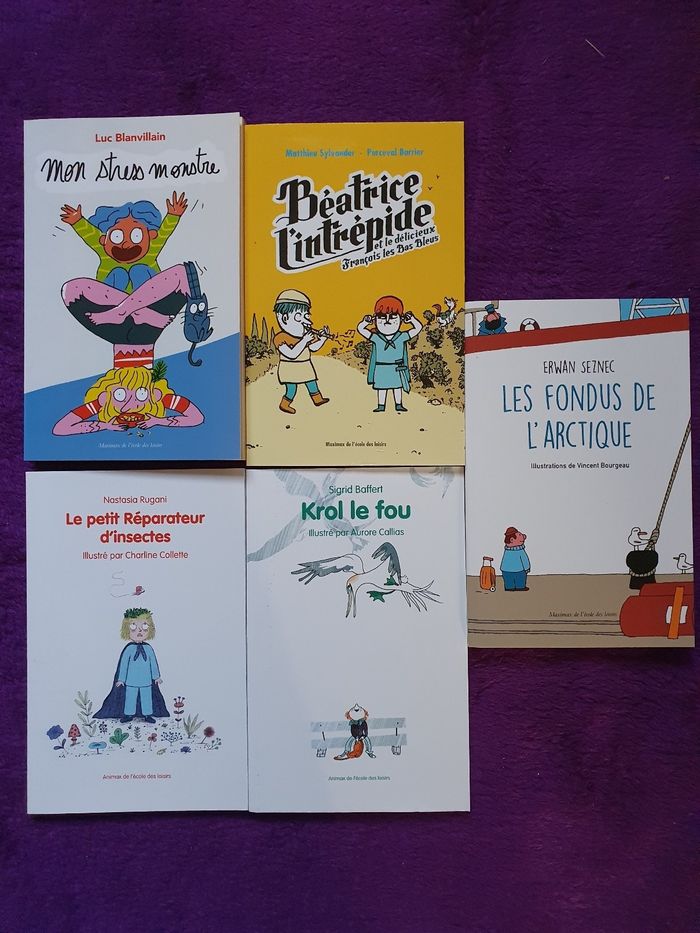 5 romans pour 6/8 ans ecole des loisirs lus une seule fois,comme neuf.