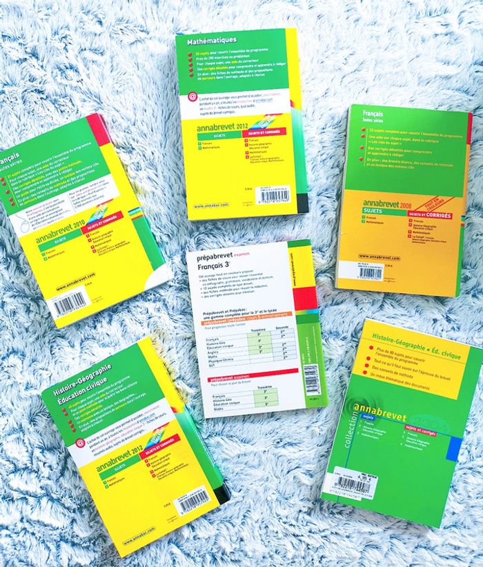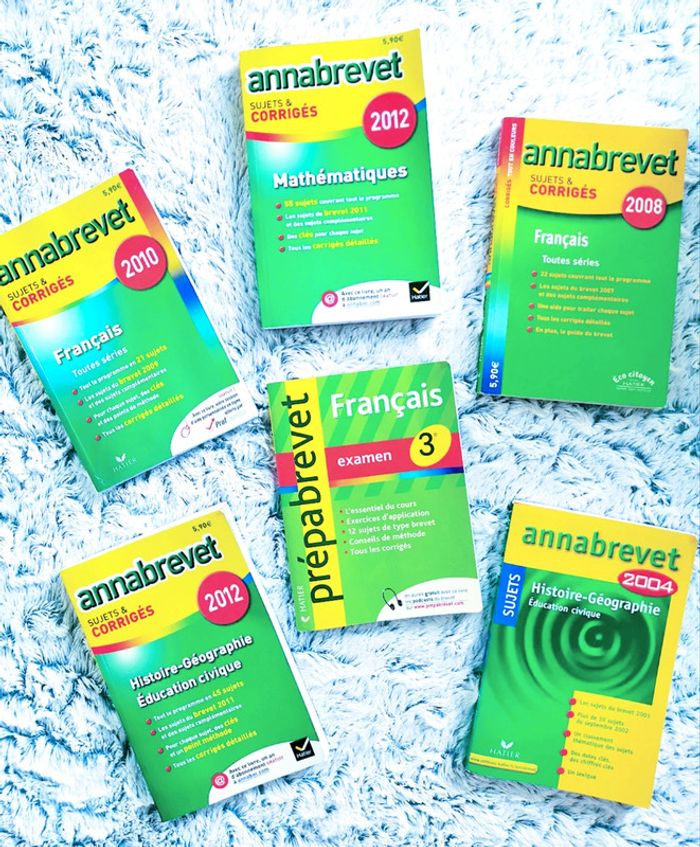 Annales brevet 3ème : Mathématiques / Français / Histoire-Géo 🖤 Annales allant de 2004 à 2012 😉 En bon état général ! Quelques petites marques d'usure mais rien de bien méchant 👍