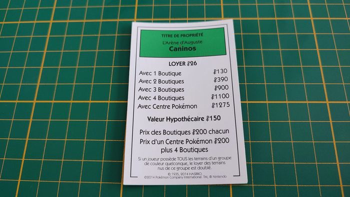 Titre de propriété Caninos pièce détachée jeu de société Monopoly Pokémon édition de Kanto #C43 - photo numéro 1