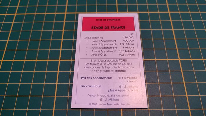 Titre de propriété Stade de France jeu Monopoly Et si le Monopoly était inventé aujourd'hui #C22