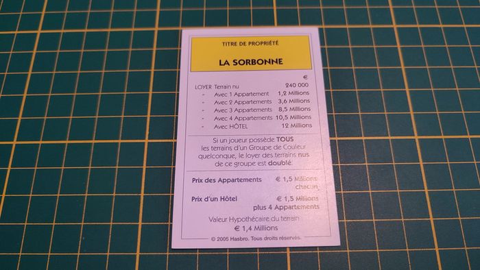 Titre de propriété La Sorbonne pièce détachée jeu de société Monopoly Et si le Monopoly était inventé aujourd'hui #C22