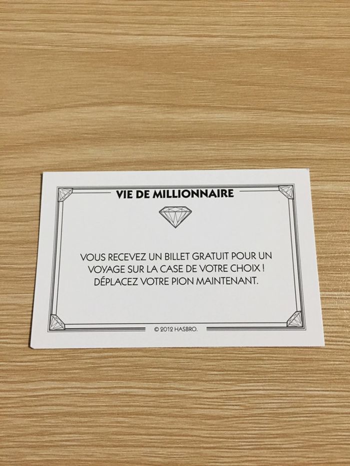 Carte vie de millionnaire Recevez un billet gratuit pièce jeu de société Monopoly Millionnaire #A45 - photo numéro 1
