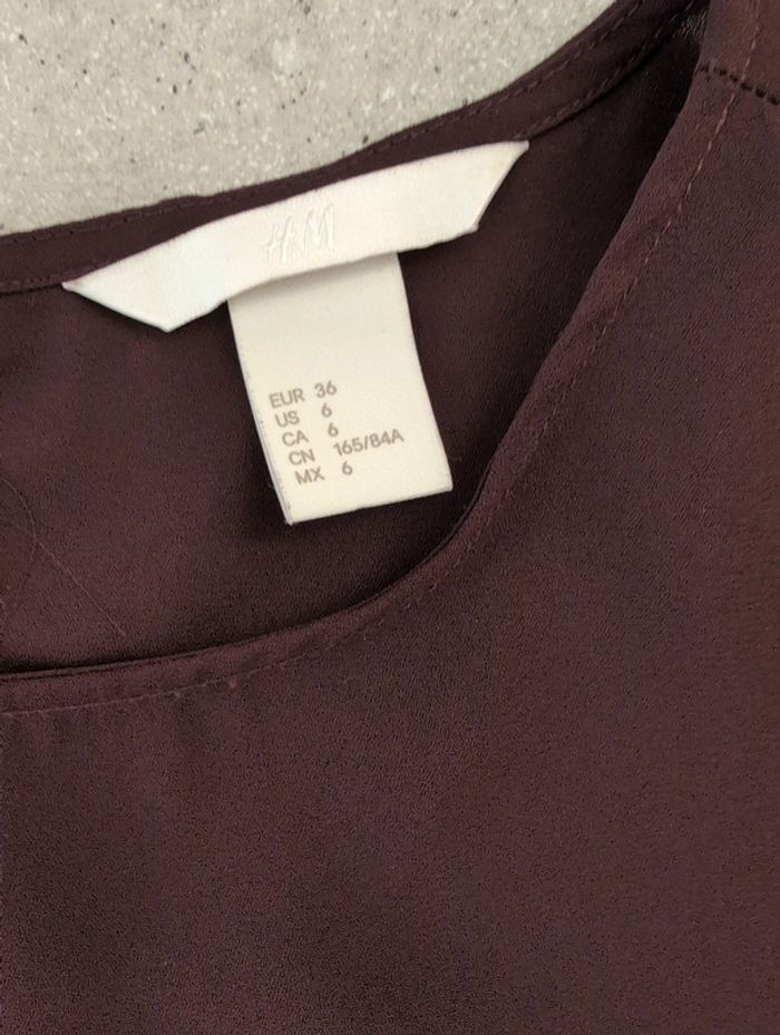 Tunique longue à manches longues coloris prune en très bon état, marque H&M taille 36, légère à porter. Celle-ci est plus longue à l'arrière qu'à l'avant, avec fente sur chaque côté. Pour le coloris, se fier aux deux premières photos et à la dernière Maison non-fumeur, envoi rapide #elodie_geo_vêtements_femme_taille36 X1