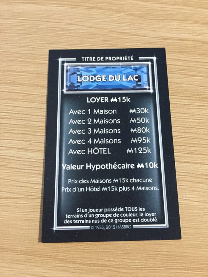 Carte titre de propriété Lodge du lac pièce détachée jeu de société Monopoly Millionnaire #A45