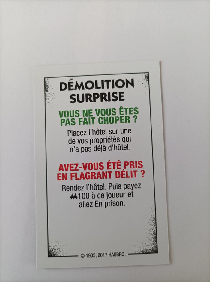 Carte démolition surprise pièce détachée Monopoly édition tricheurs Hasbro gaming #A28 - photo numéro 1