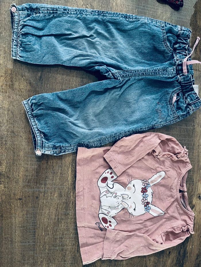 TEE shirt manches et jean Très bon état 12 mois Haut creeks Bas hm