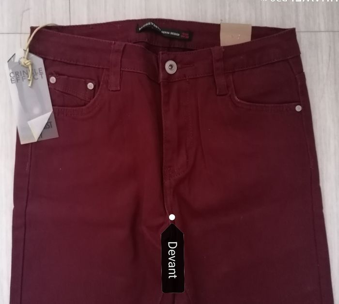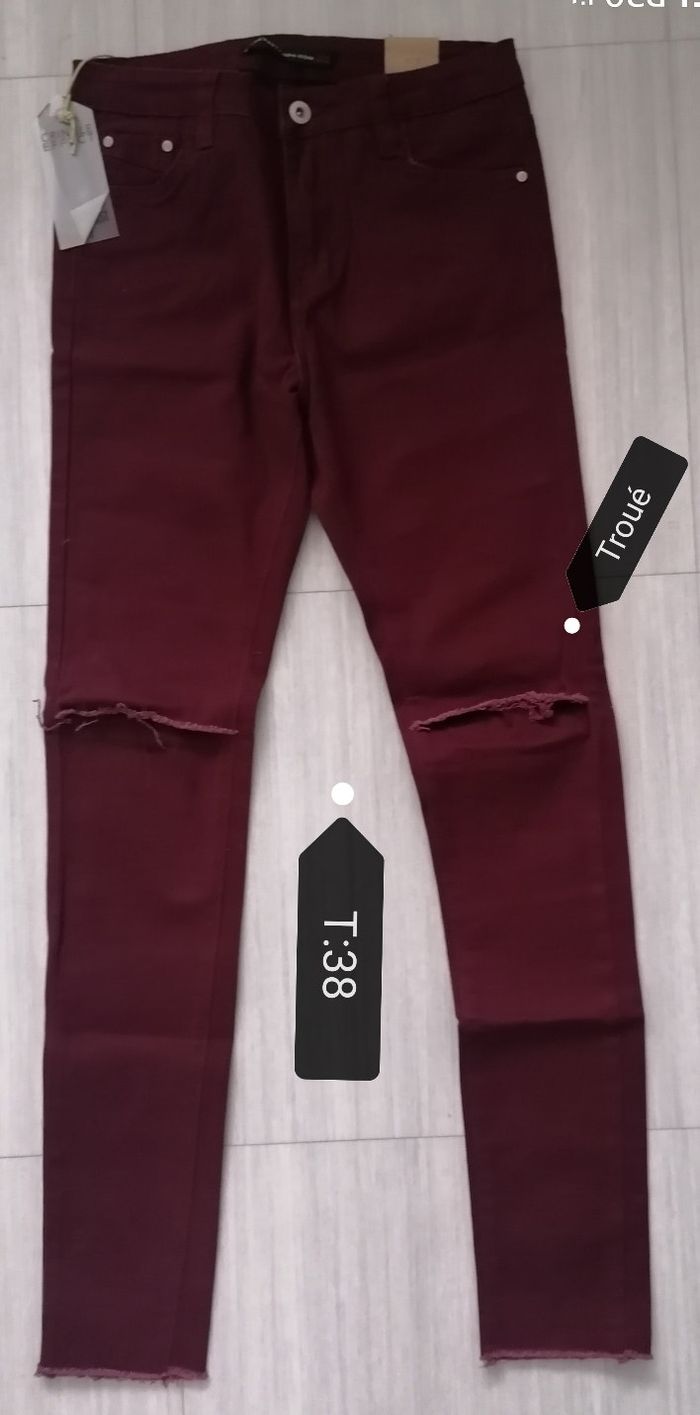 Jeans filles skinny Marque :redseventy Taille M (38) Couleur bordeaux Troué aux genoux Jambes :sans ourlets 2 poches sur les côtés, 2 derrière. Neuf avec étiquette 7€
