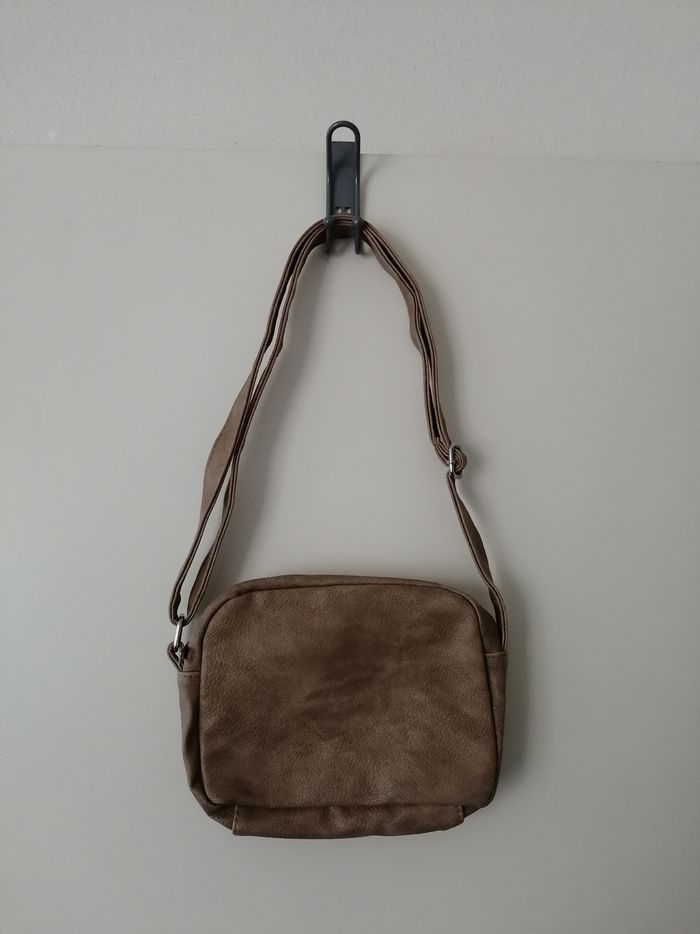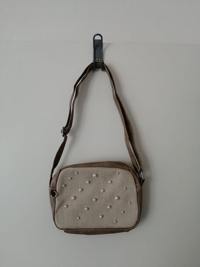 Sac bandoulière taupe et beige avec perles nacres neuf - photo numéro 2