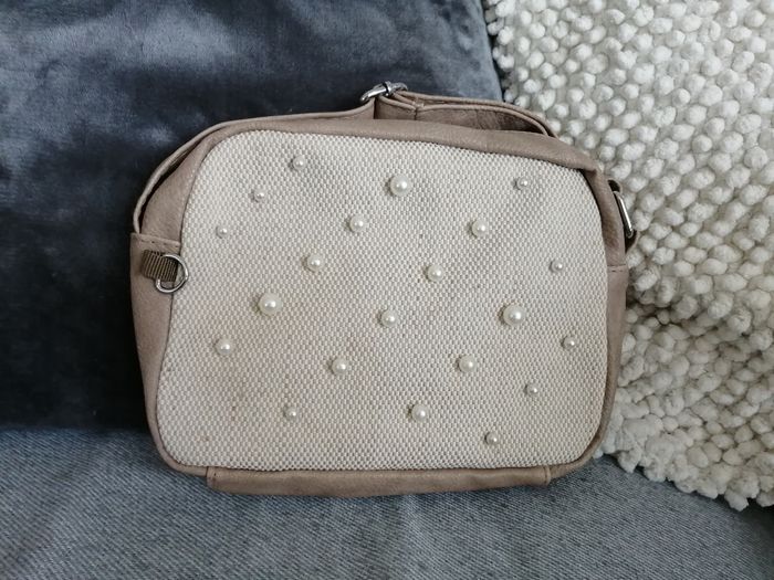 Sac bandoulière taupe et beige avec perles nacres neuf - photo numéro 1