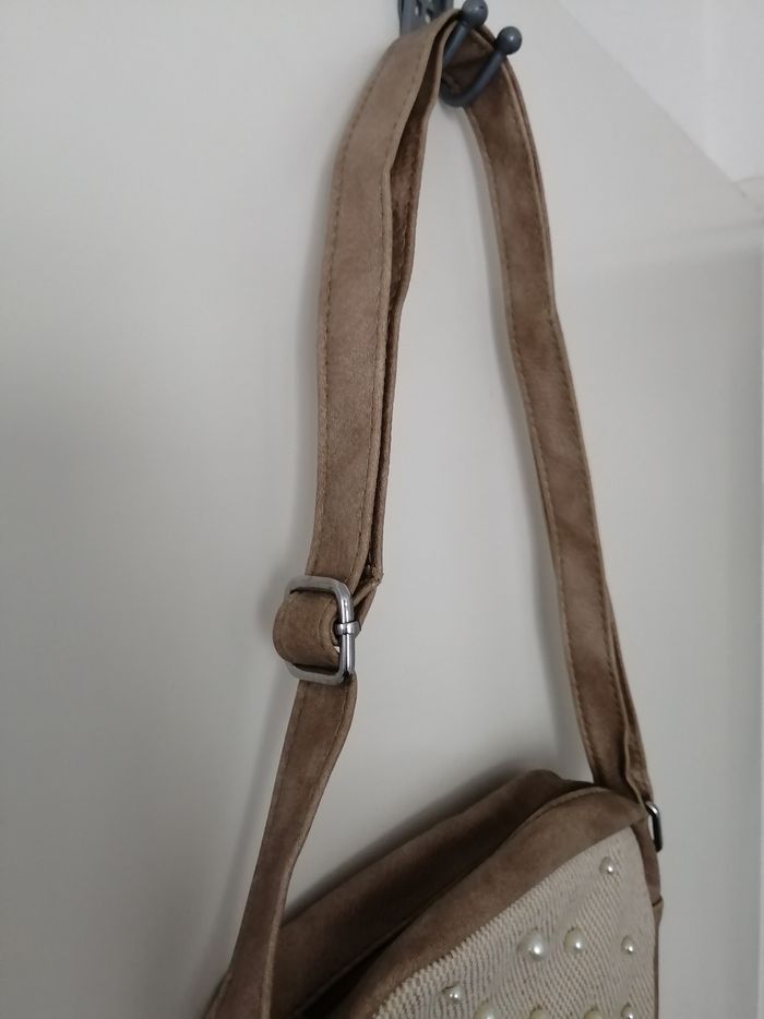 Sac bandoulière taupe et beige avec perles nacres neuf - photo numéro 3