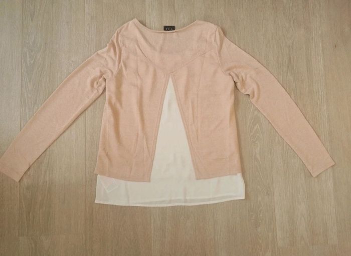 Pull femme fin fantaisie dos taille XS en très bon état, juste un petit trou dans le bas du dos voir photos