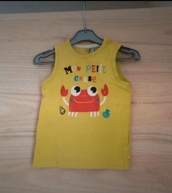 Débardeur bébé garçon de la marque Orchestra en taille 18 mois en parfait état, très peu porté, motifs crabe Couleur vert pomme