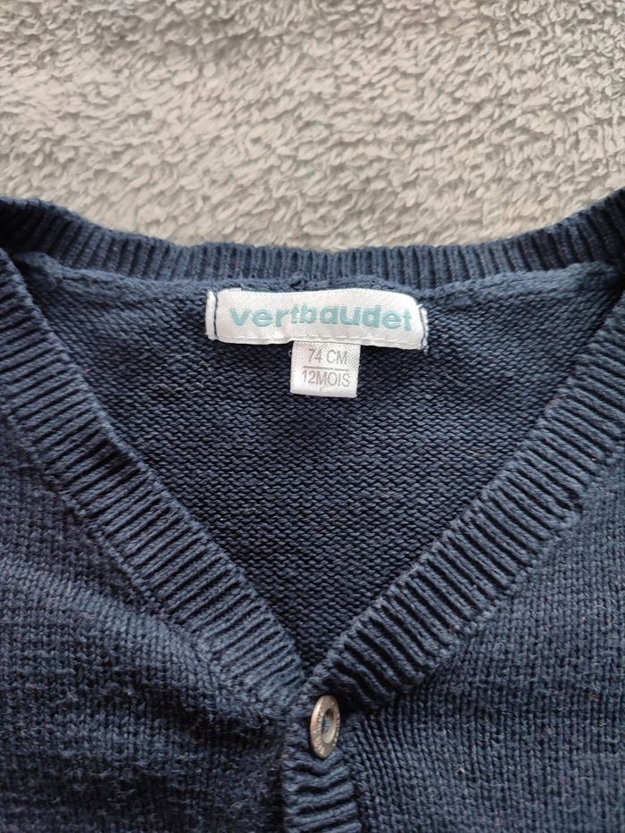 Gilet 12 mois 74 cm avec poches a liseré gris,porte mais en bon état,couleur moins vives au niveau de la fermeture,choix fille et garçon a partir du 1 mois, jouets, accessoires, petits prix, envoi rapide et soigné, remise possible