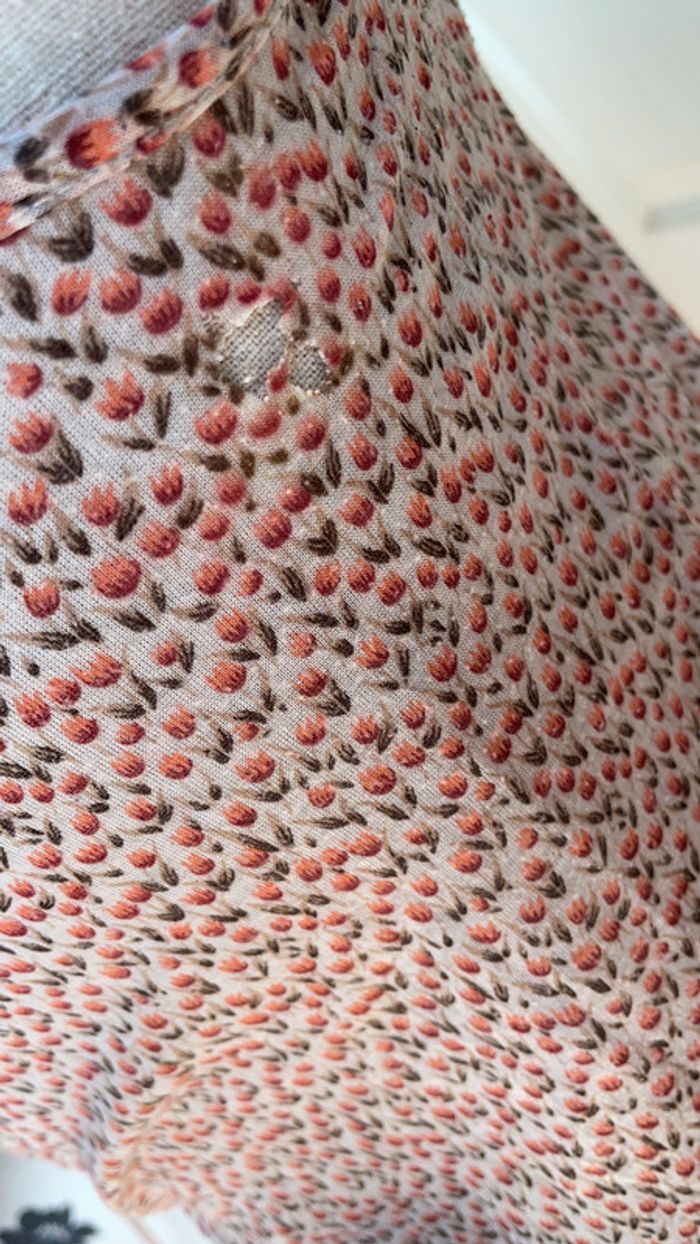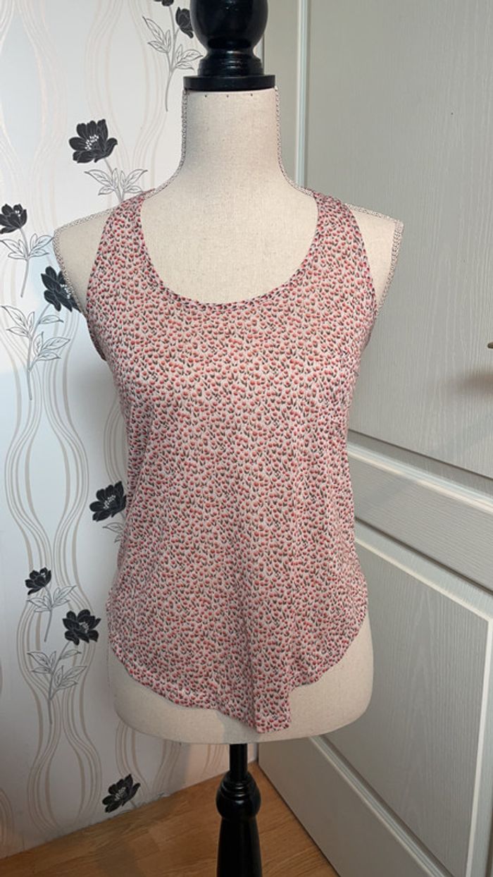 débardeur motif petites fleurs taille S Cotton tout petit trou sur photo zoomé