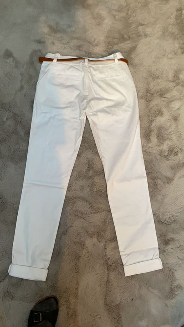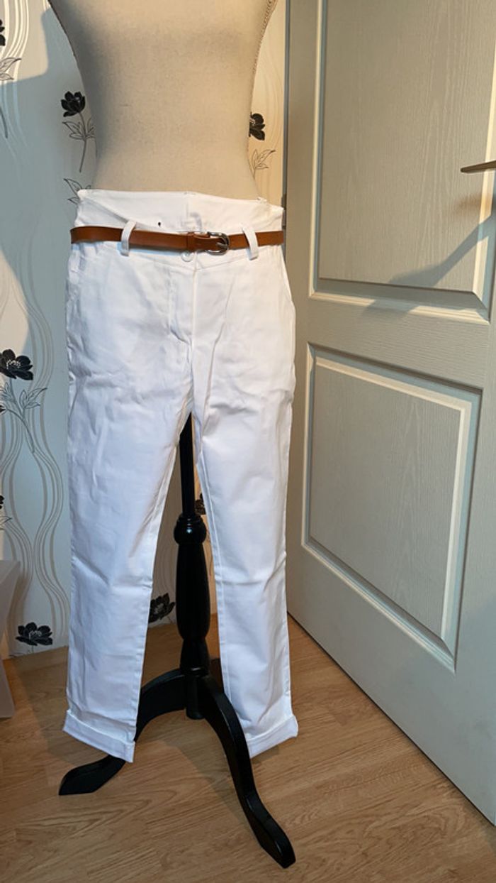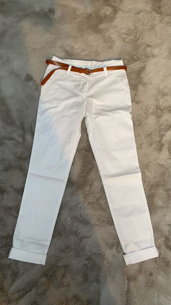 pantalon chino blanc jamais porté fermeture éclair et bouton munie d’une ceinture fine marron