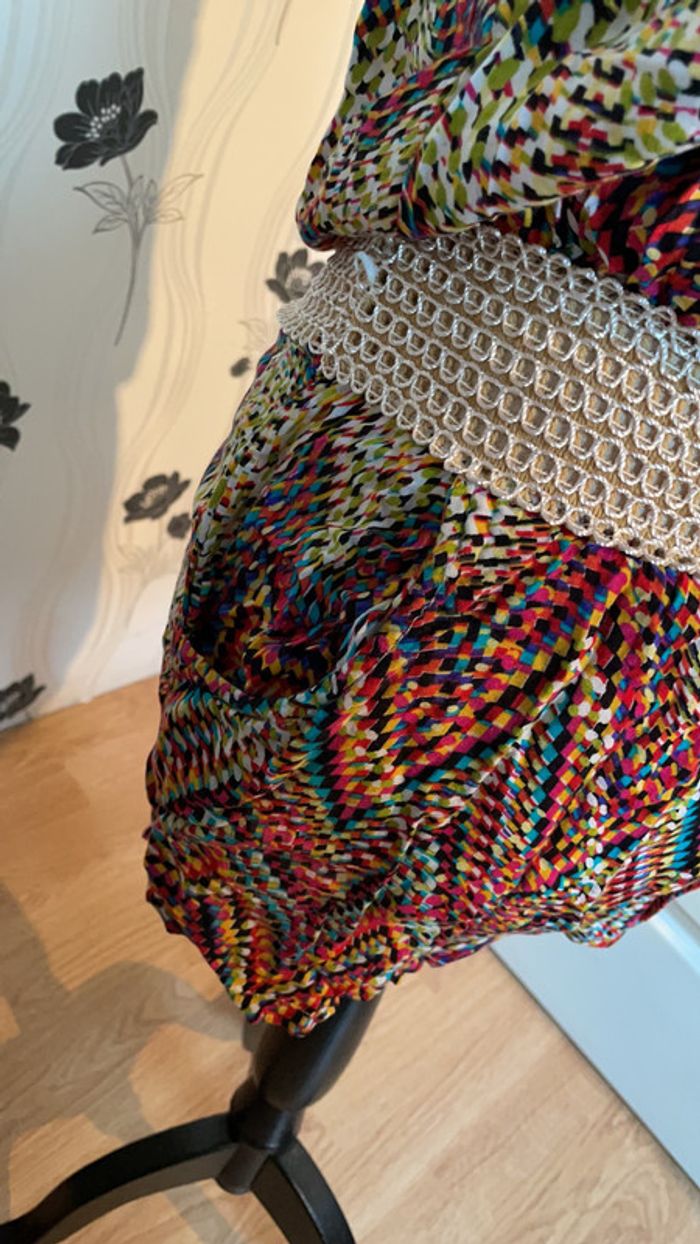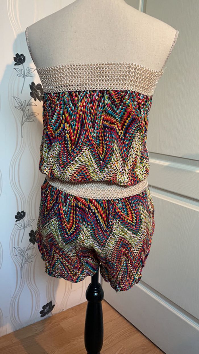 combinaison short été multicolore 100%coton matière très fraîche et fluide deux élastiques poitrine et taille deux poches sur le devant (short)