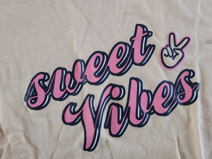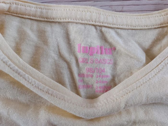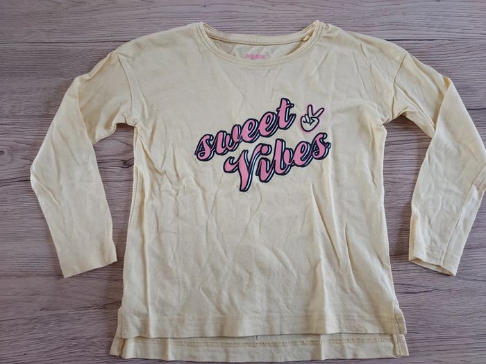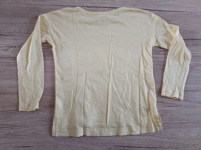 T shirt manches longues jaune avec inscription rose. Taille 4 ans