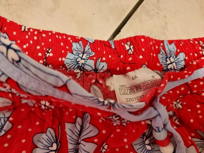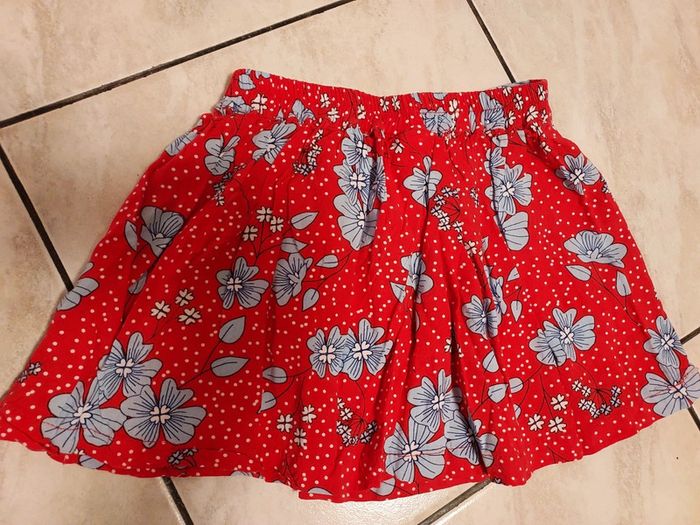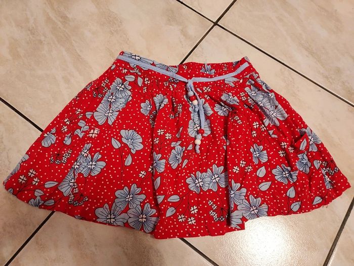 Jupe légère rouge avec fleurs bleues. Taille élastique