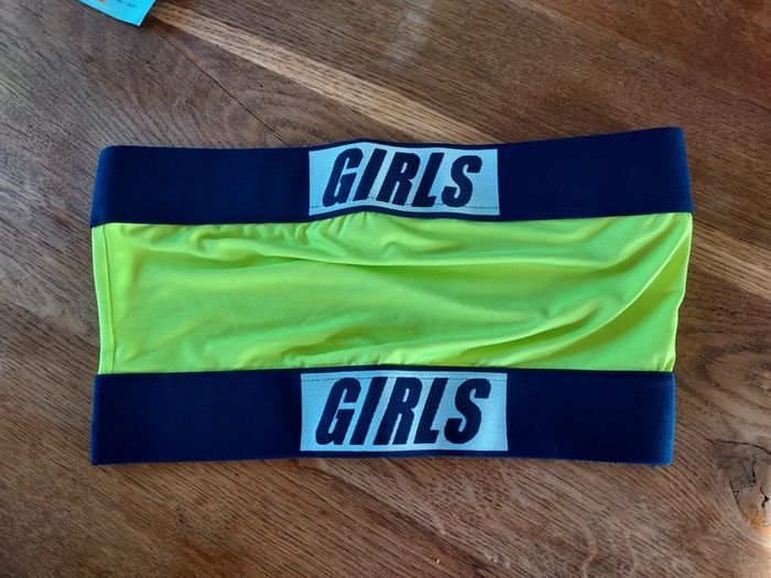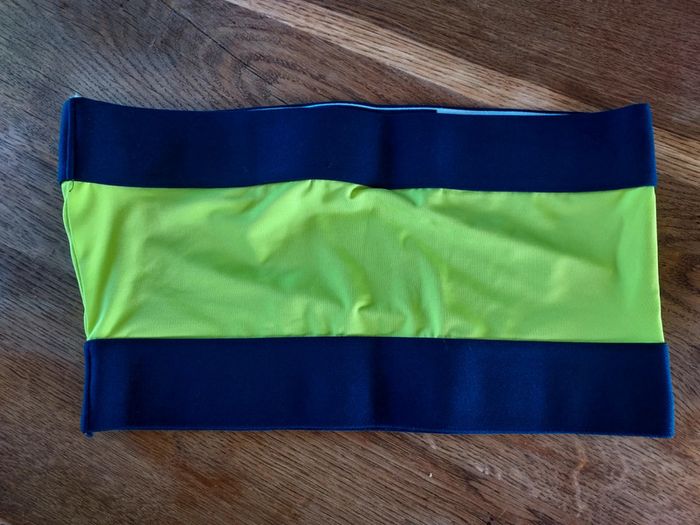 Bandeau neuf jamais porté. Jaune fluo et bleu marine. Taille S