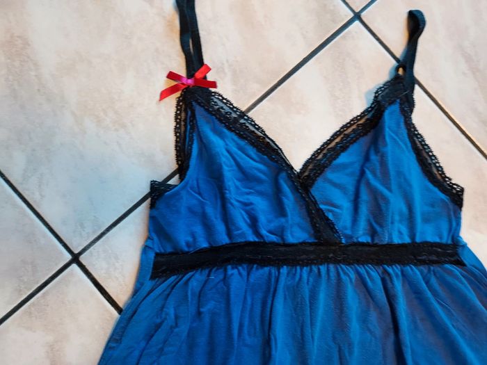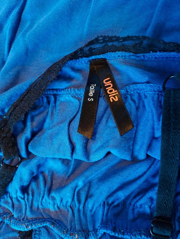 Nuisette bleue avec bretelles réglables.