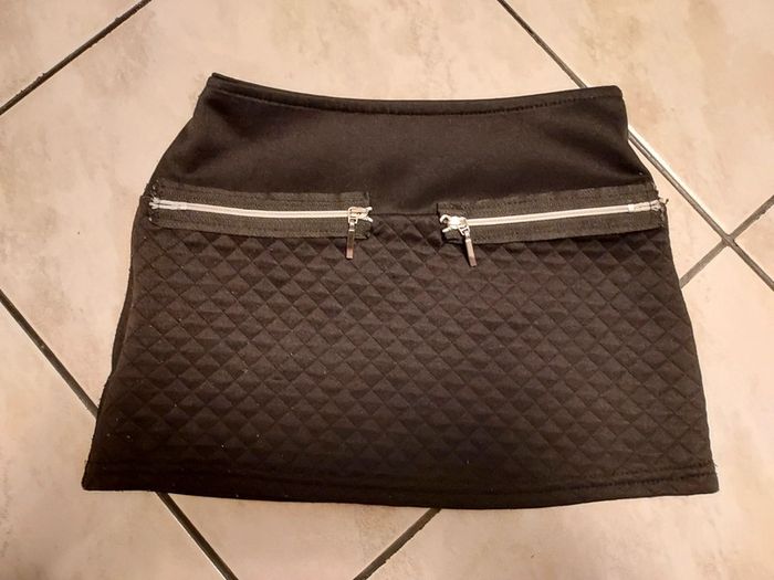 Jupe droite noire. Deux fausses poches à l avant. Quelques bouloches à l arrière. Fermeture éclair discrète sur le côté