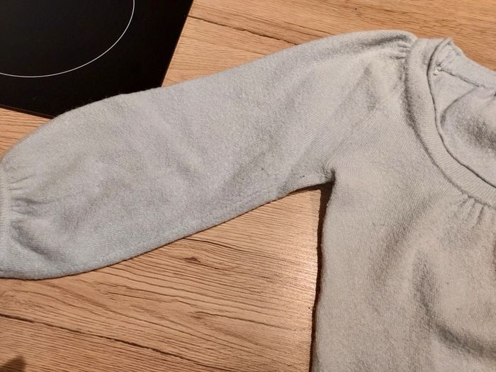 Pull chaud manches bouffantes 3/4. Lien pour resserrer en bas. Quelques bouloches mais en très bon état.