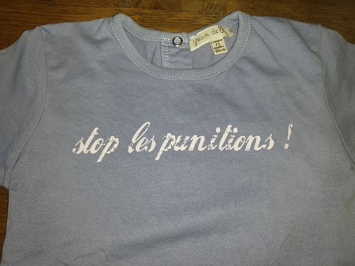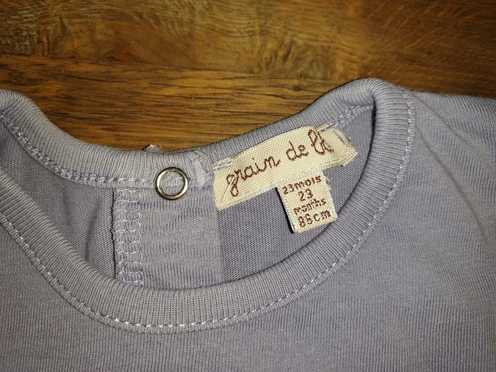T shirt manches courtes couleur mauve avec inscription rose pâle. Taille 2 ans