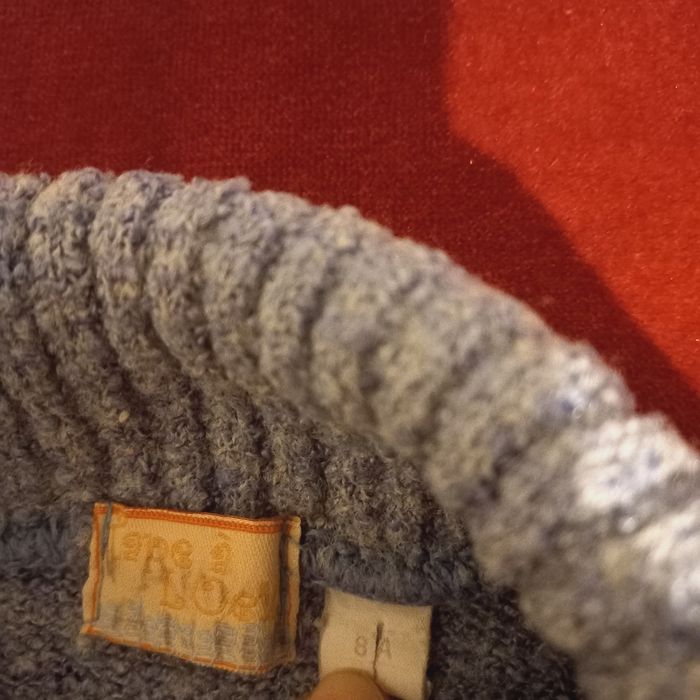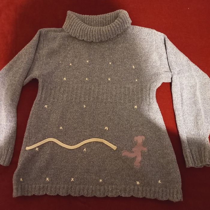 Pulle pour enfant 8 ans, en très bon état, en laine, couleur bleu clair avec étoile blanche, marque : tapé à l'œil.