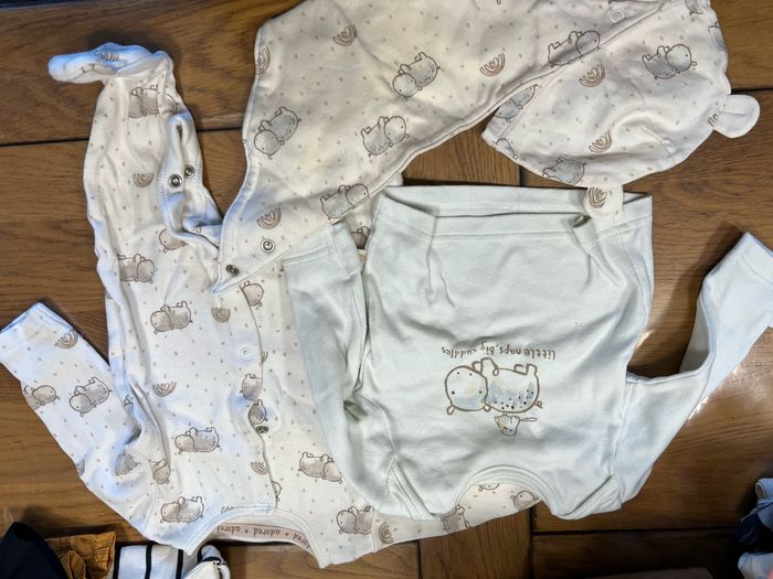 Lot de pyjamas et bodies taille 0-3 mois just une tache sur le dernier body