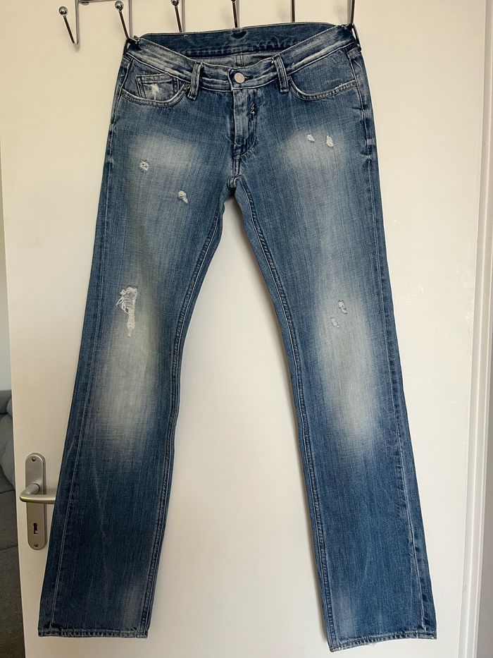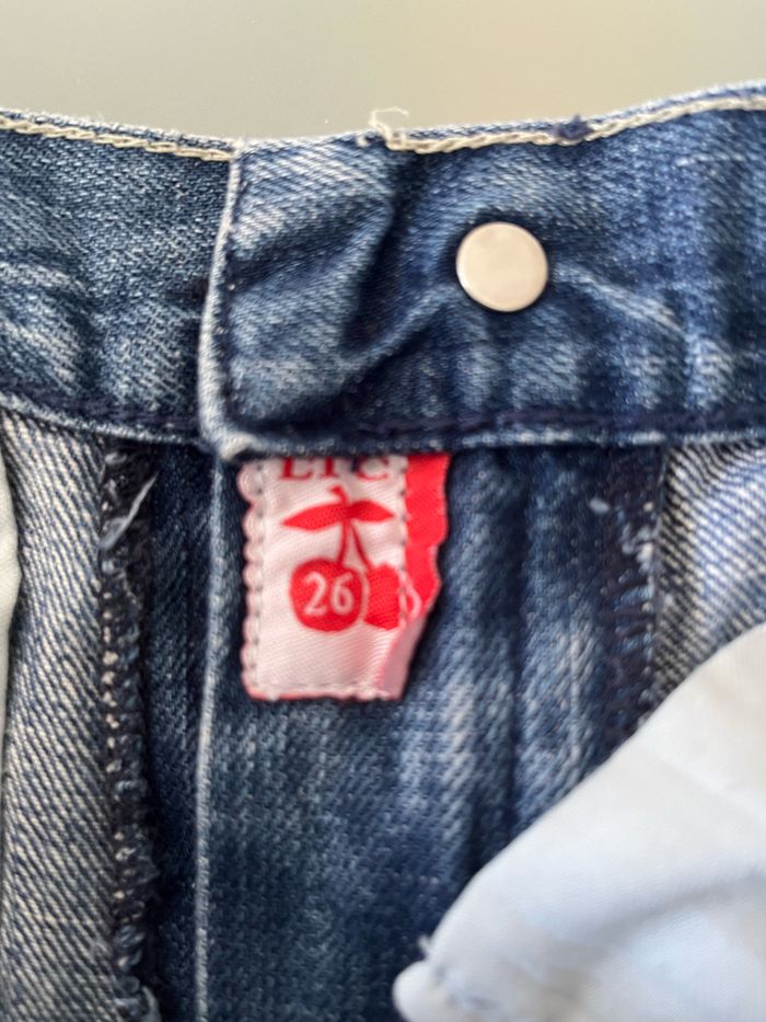 Jean taille basse non stretch Le Temps des cerises en très bon état. Effet usé et déchiré sur le devant et derrière. Taille 26 (selon guide taille de la marque correspond à un 36 taille française)