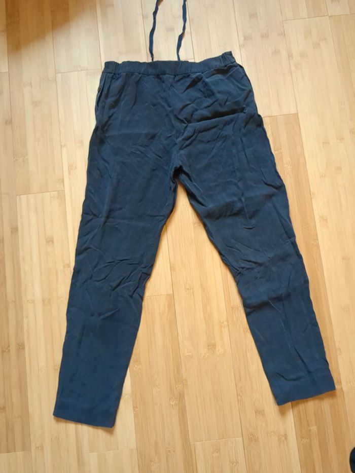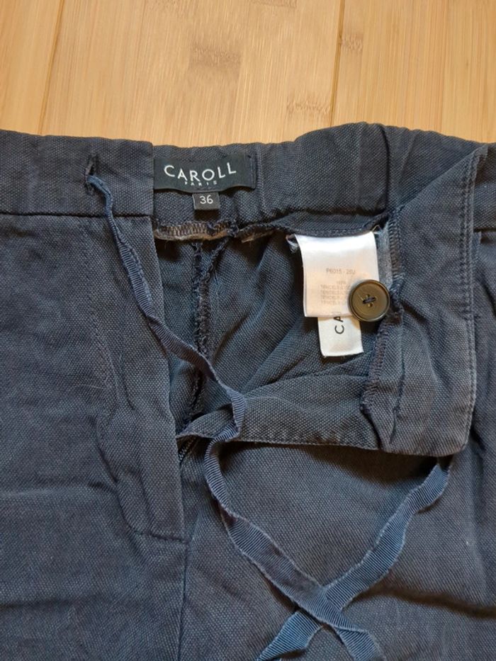 Peu porté. Caroll. Taille 36. Bleu foncé. Cordon pour serrer mais taille élastique. Taille plutôt haute. Matière très jolie et super agréable à porter., C'est du tencel lyocell Mes autres vêtements en 36: #pekou77femme36