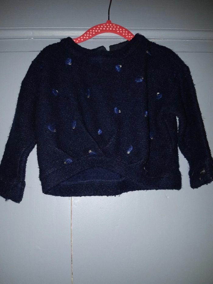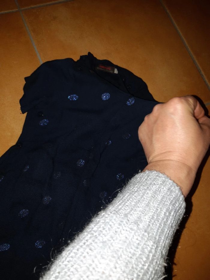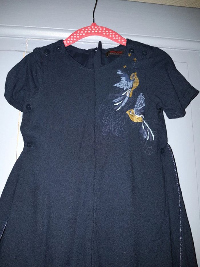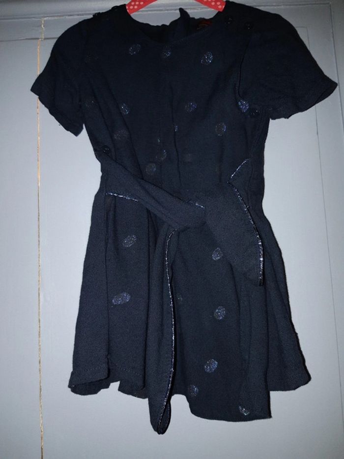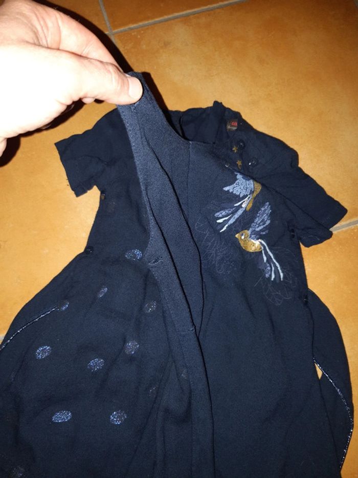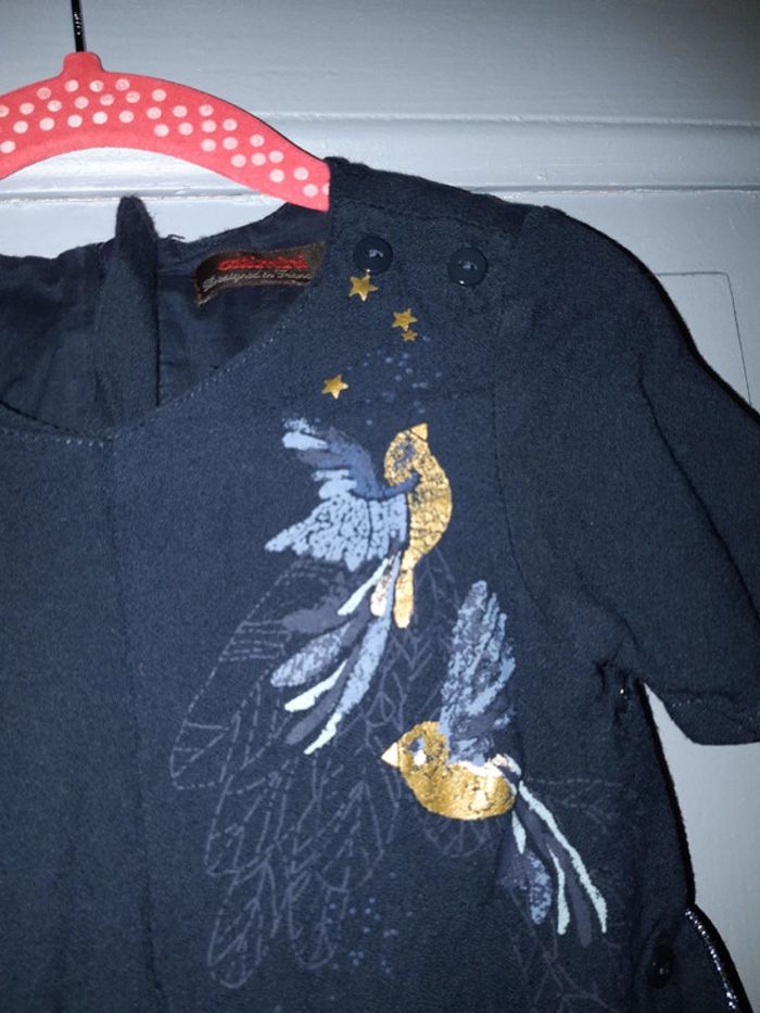 Robe pois dorés ou oiseaux, le changement s'effectue en changeant un pan de la robe avec des boutons cf photos de la fin.En tbe Pull bon état quelques bouloches Mes autres vêtements 18 mois: #pekou77vêtements18mois