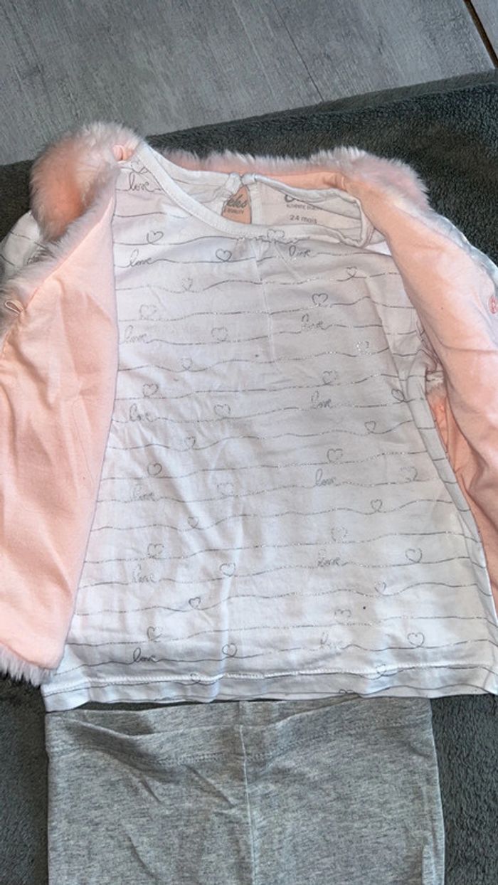 Manteau sans manches rose avec bouton et élastique État neuf Taille 24 mois