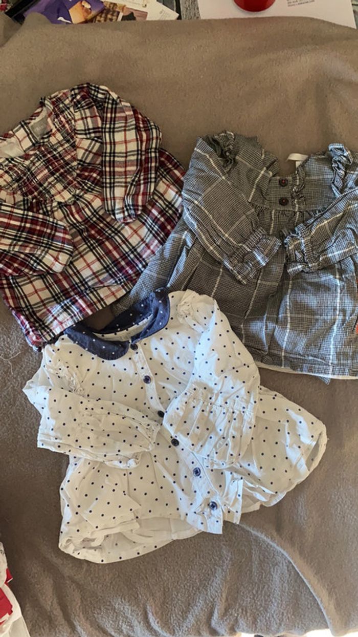 jolies blouses manches longues avec doublure taille 9/12 mois pour la blouse Primark bordeaux et 12 mois pour les 2 autres blouses Orchestra #charliesdressing12mois