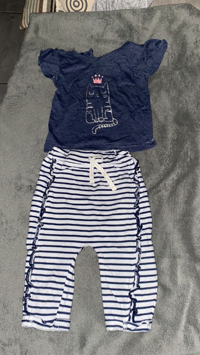 tee shirt manches courtes et pantalon style marinière taille 6/9 mois. très bon état #charliesdressing9mois