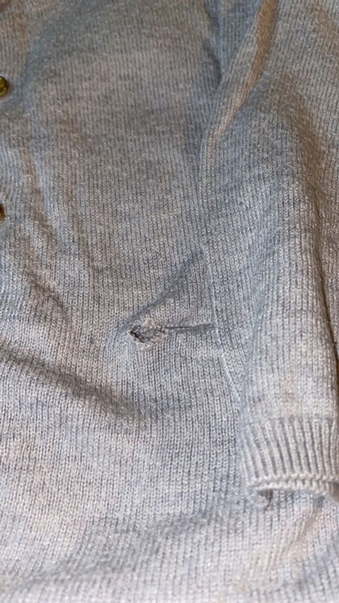 un petit accro sur la poche du gilet gris taille 9-12 mois #charliesdressing12mois