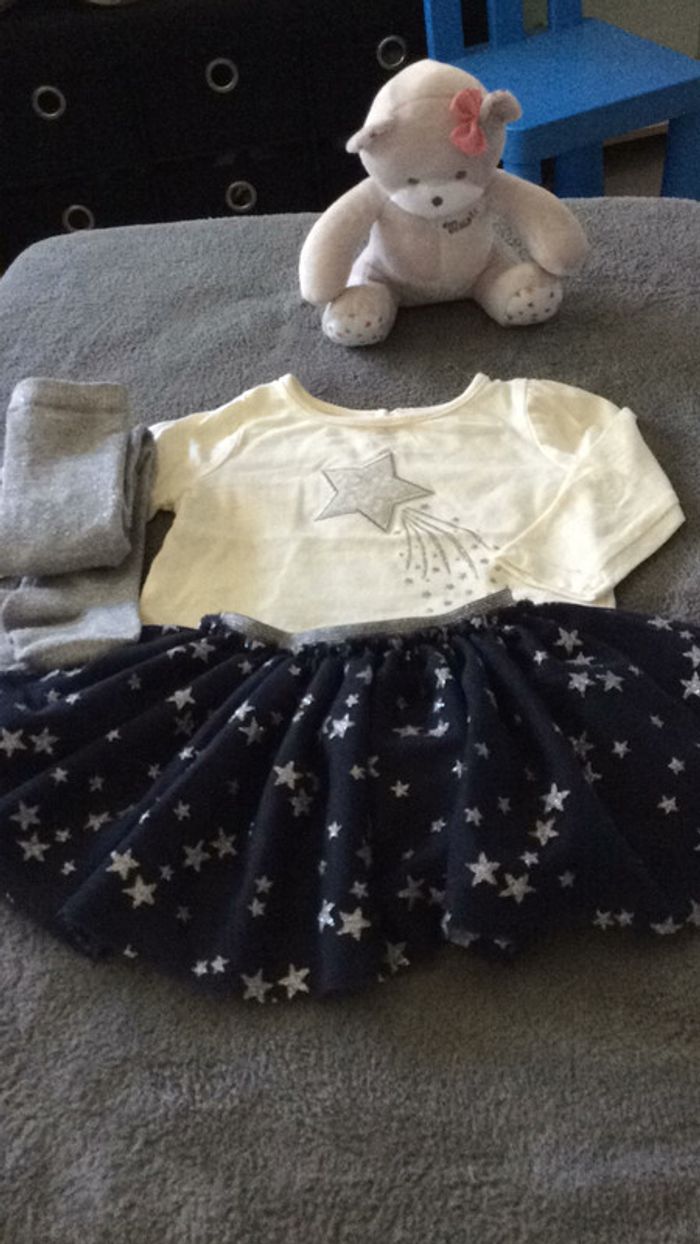 Ensemble tee Shirt, jupe et collant taille 3/6 mois état neuf #charliesdressing6mois