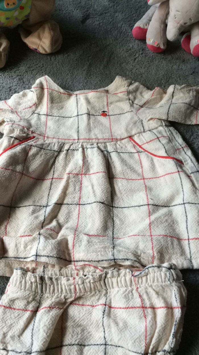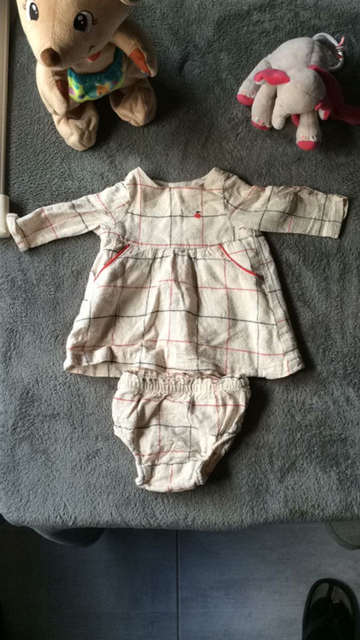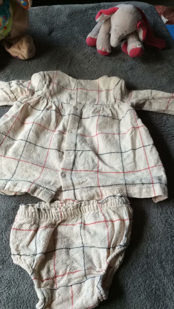 adorable petit ensemble avec sa culotte assortie fermeture par pressions dans le dos. petites poches sur le devant taille 1 mois très bon état #charliesdressing1mois