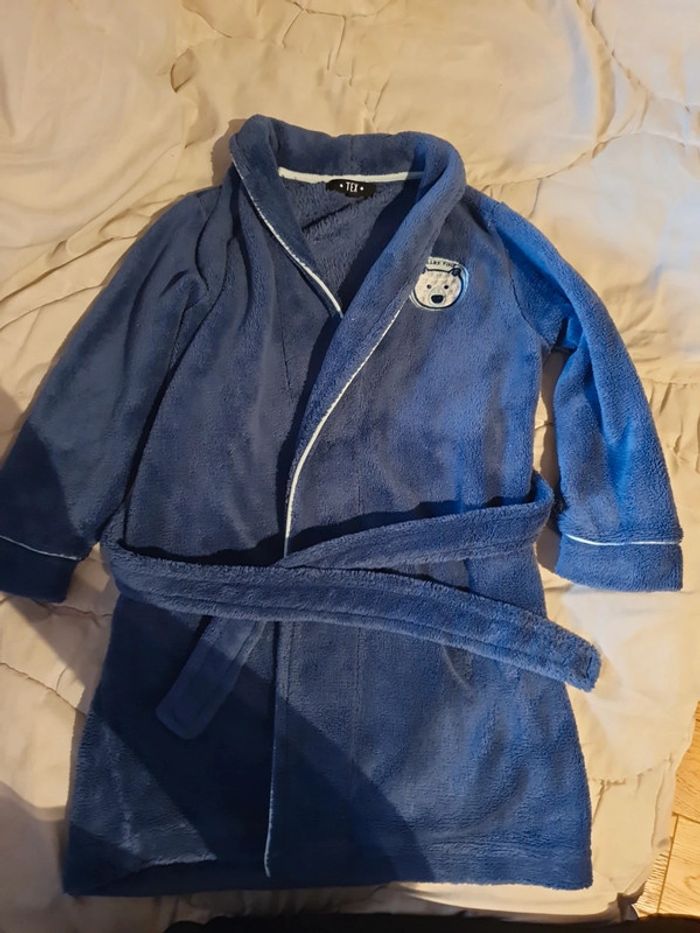 Peignoir enfant 3-4 ans texturé tout doux. Porté régulièrement mais aucune tâche où trou. Bon état
