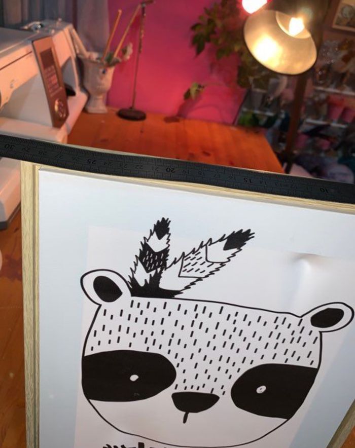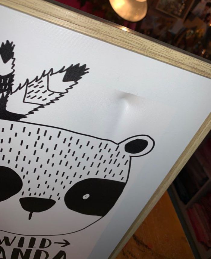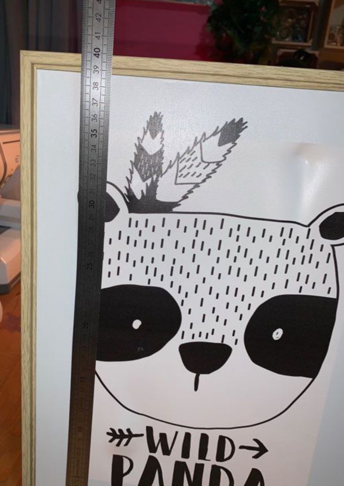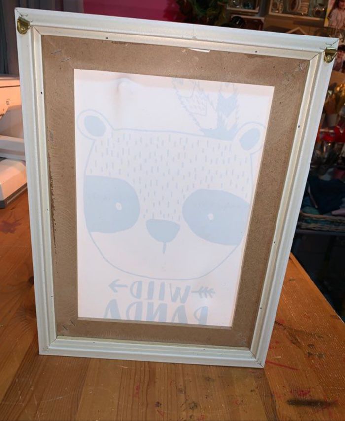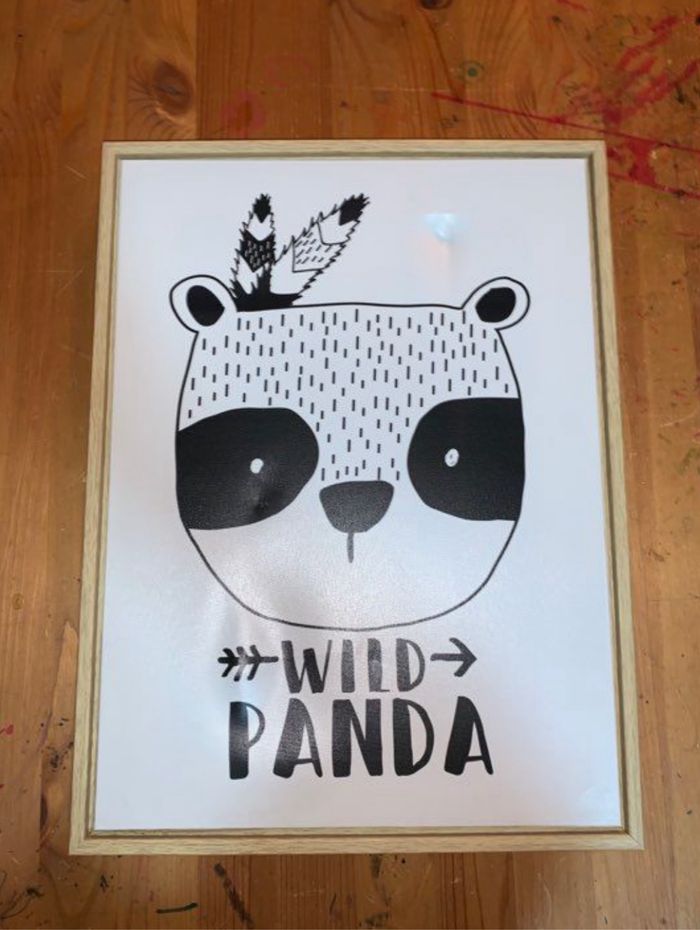 Tableau bois et toile Atmosphera Collection wild panda Visuel noir et blanc Encadrement large en bois Petit défaut dans le haut cf photos (ne se voit pas une fois accroché au mur) Décoration chambre d’enfants