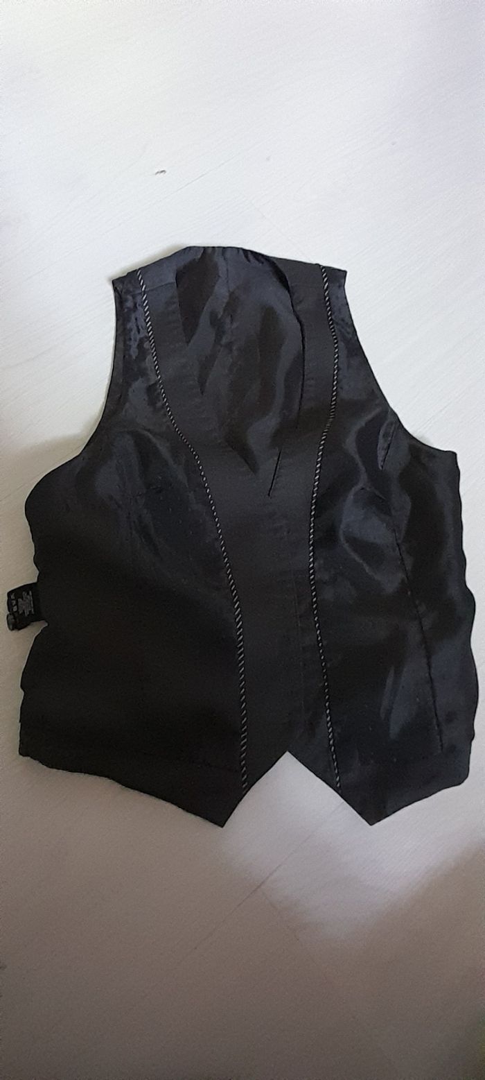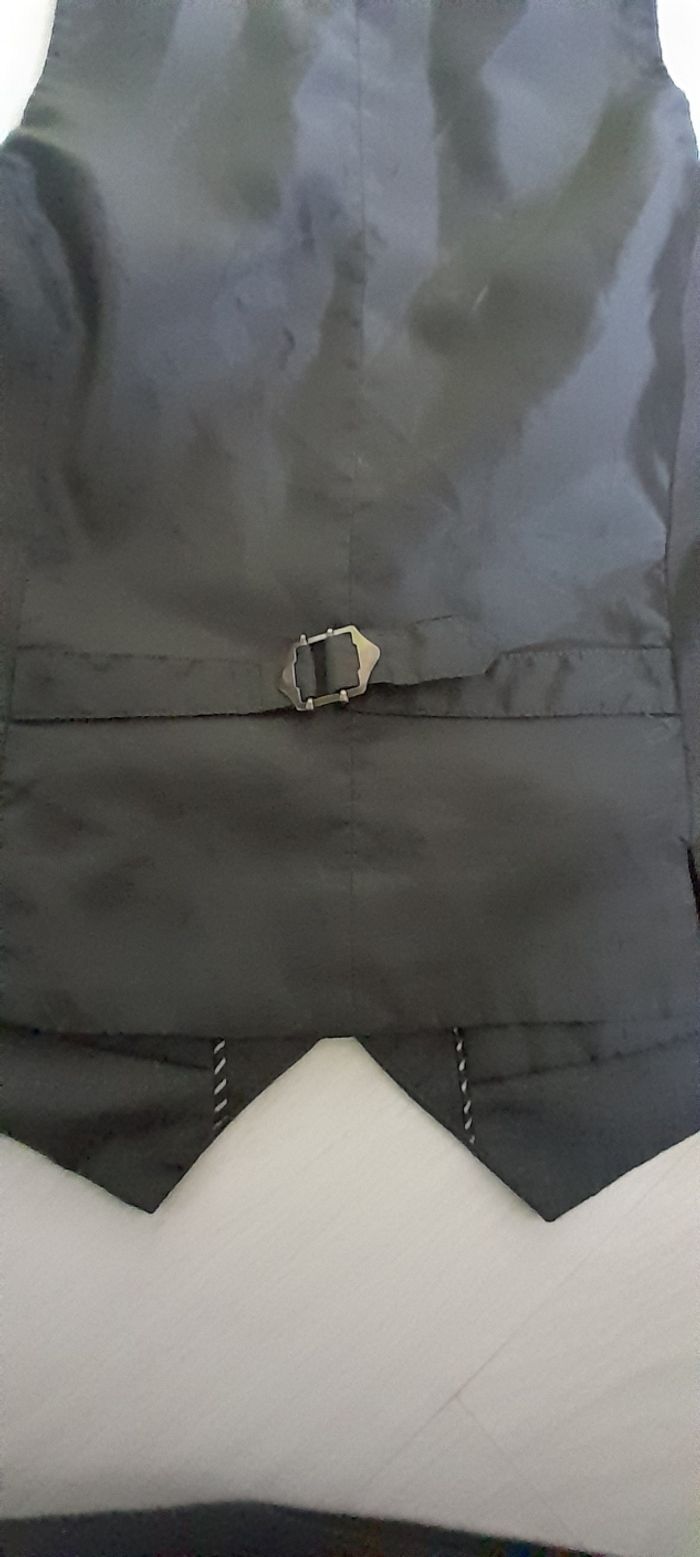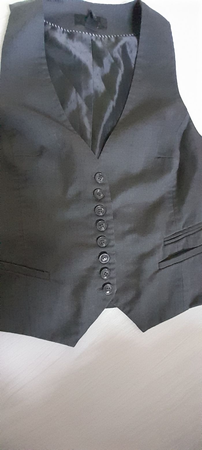Gilet T 36 Marque H&M Couleur gris anthracite et doublure noire Attache boutons 3 poches devant encore fermer ( à ouvrir) Le devant 66% Polyester/ 17% laine/ 15 % viscose et 2 % Elasthane Doublure 100 % Polyester Quasi neuf porté 1 fois