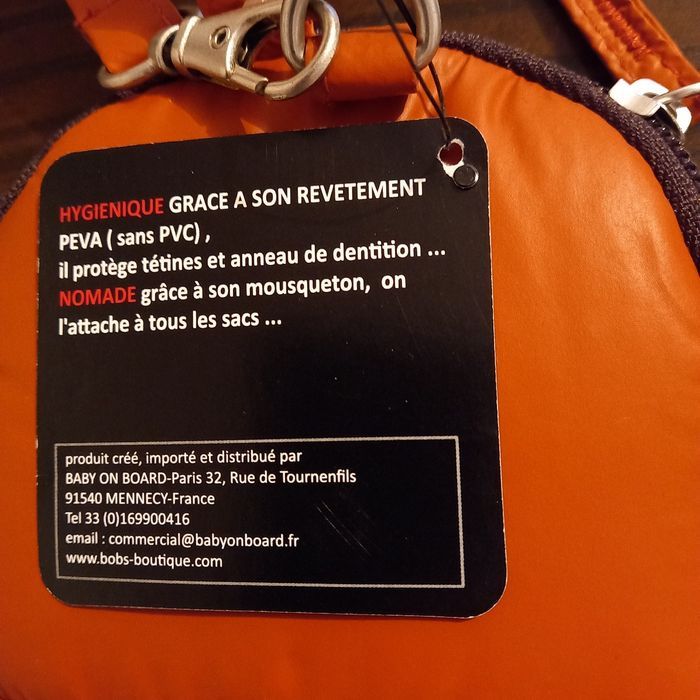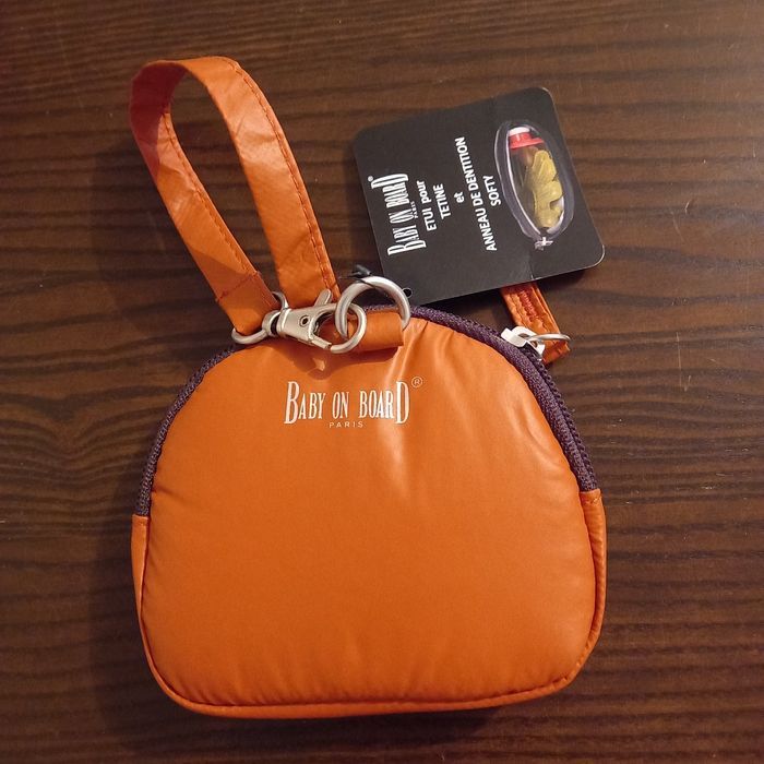 Bel étui pour tétine et anneau de dentition bébé Hygiénique grâce à son revêtement PEVA Nomade on peut l'attacher à tout les sacs Coloris rouille