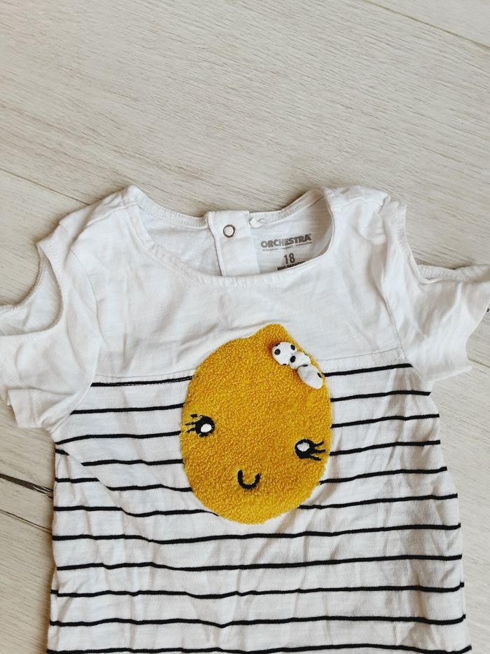 Vêtement bébé fille tee-shirt manches  courtes Orchestra rayé  motif citron relief 18 mois - photo numéro 3