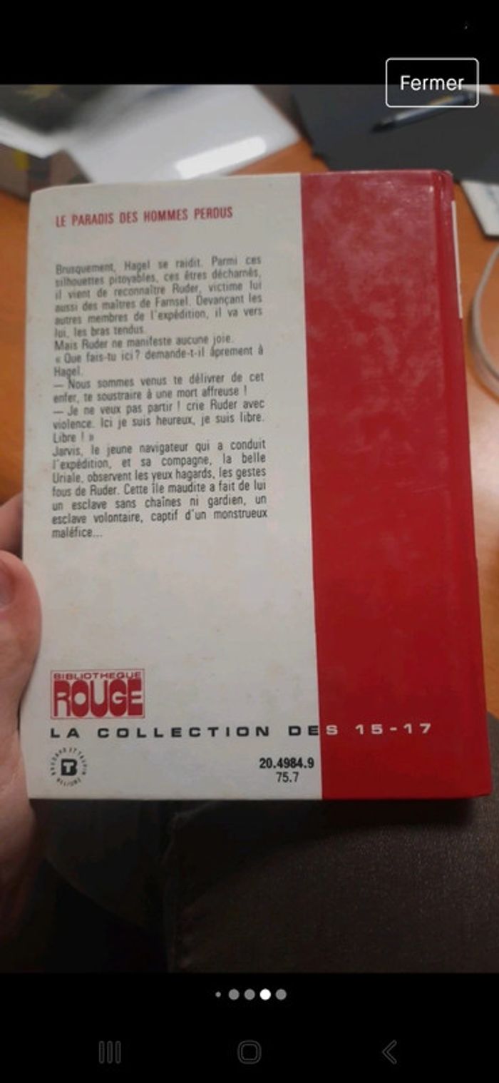 YANN ET LE GANG DE LA DROGUE par Knud Meister - Carlo Andersen llustrations de Daniel Billon sont tant début caché Yann paisible que et dans commis de d'incendie cela! ses une la en amis villa côte se Plusieurs l'absence campent voisine, Ouest. déclare, actes du sur de un surveille Paisible? une groupe, sabotage homme. Yann plage Pas un avec une longue-vue... Ce roman policier, le 13e de la série, cap- tivera tous les jeunes. Filles et GarçonsPARADIS DES HOMMES PERDUS Brusquement, Hagel-se raidit. Parmi ces silhouettes pitoyables,ces êtres décharnés. il vient de reconnaitre Ruder, victime lui aussi des maitres de Farnsel. Devançant les autres membres de I'expédition, ilva vers lui, les bras tendus. Mais Ruder ne manifeste aucune joie. e Oue fais-tu ici? demande-t-il aprement à Hagel. Nous sommes venus e délivrer de cet enfer,te soustraire àé une mort affreuse - Je ne veux pas partir ! crie Ruder avec violence. Ilci je suis heureux, je suis libre. Jarvis, e jeune navigateur qui a conduit Libre!n l'expédition, et sa compagne, la belle Uriale, observent les yeux hagards, les gestes fous de Ruder. Cette ile maudite a fait de lui un esclave sans chaines ni gardien, un esclave vrolontaire, captif d'un monstrueux maléfice. BIBLIOTHEQUE ROUGE LA COLLECTION PoUR DES 15-17