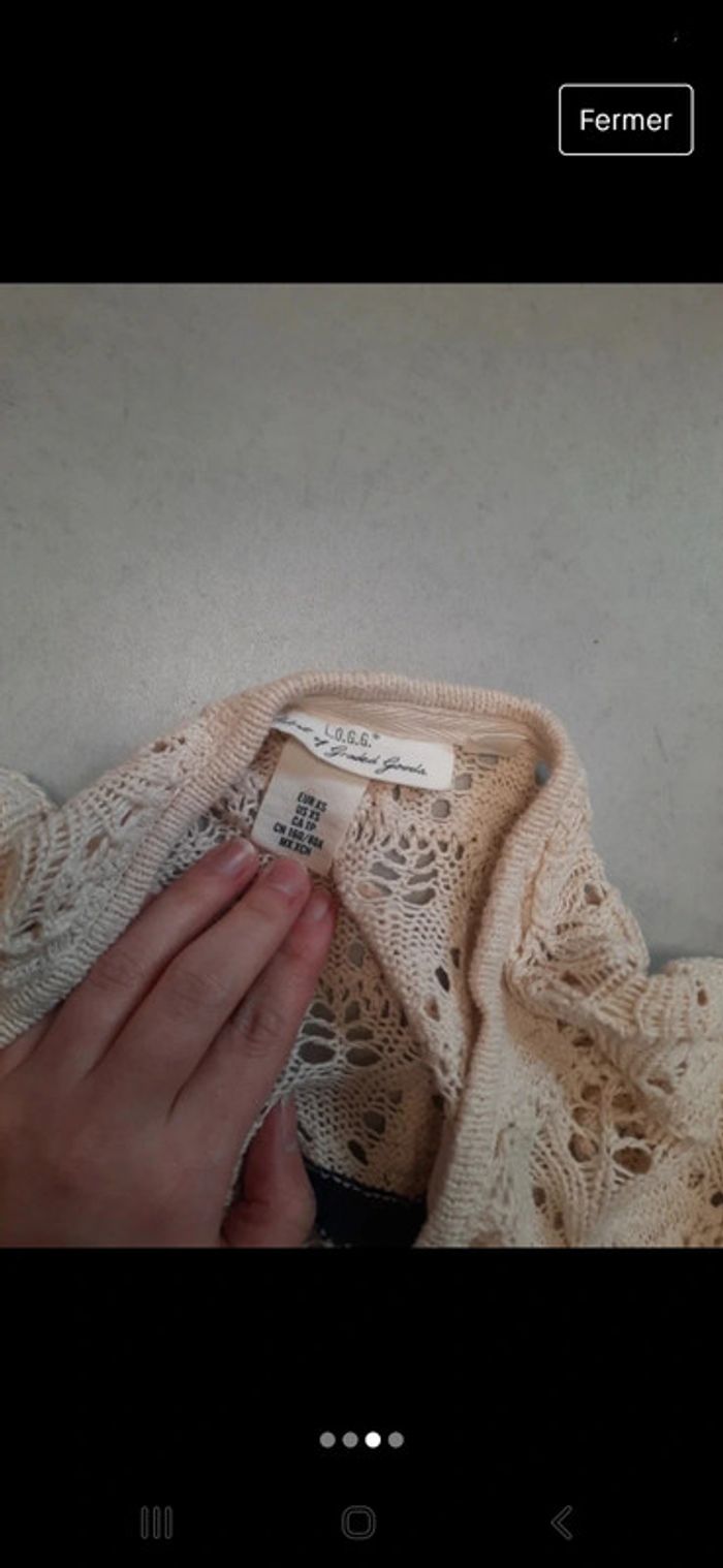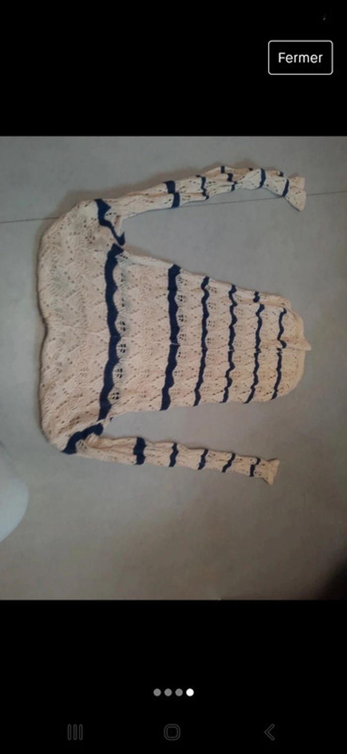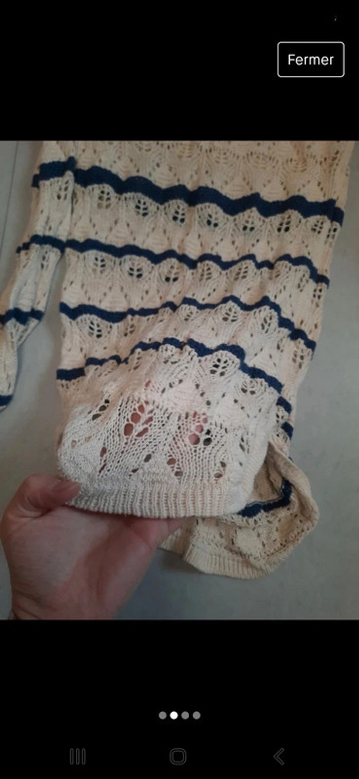 85 pourcent coton #zaceci2834 beige et bleu pull type léger macramé crochet logg