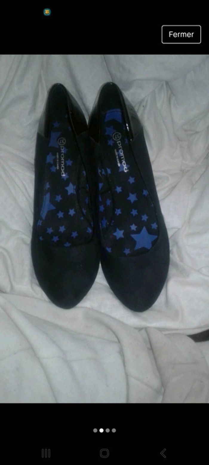Juste vernis sur talon abîmé Escarpin talon epais Be promod Tissus intérieur etoile bleu #zaceci2837 #zaceci28t37