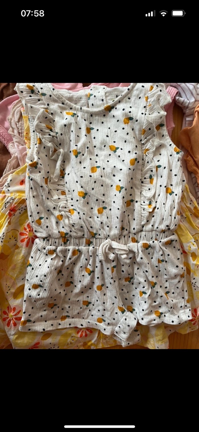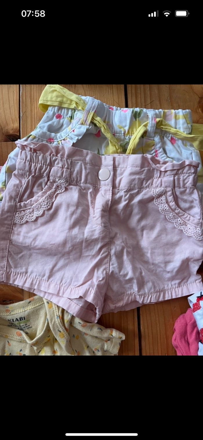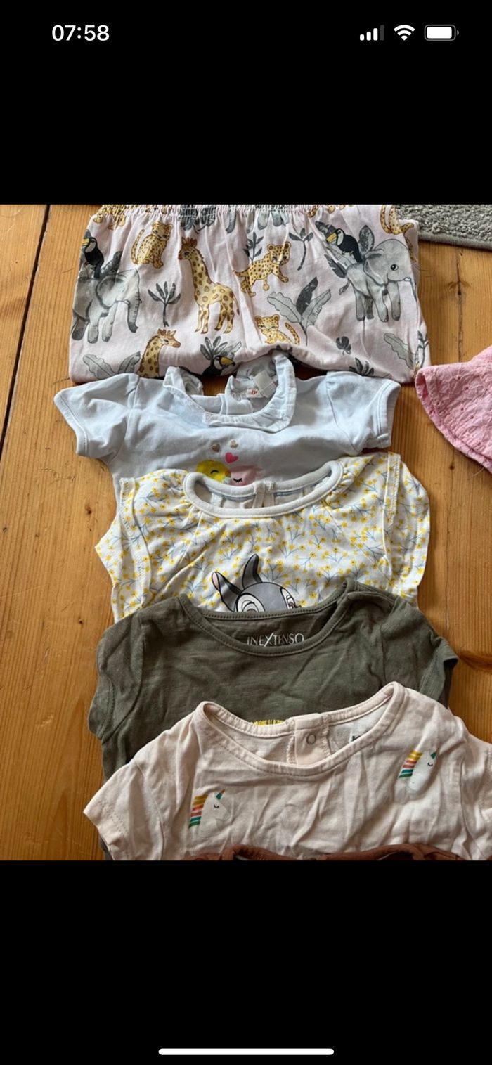 Vends lot de vêtement été pour bébé fille Très bon état T shirt short robe pijama body un peu de tout